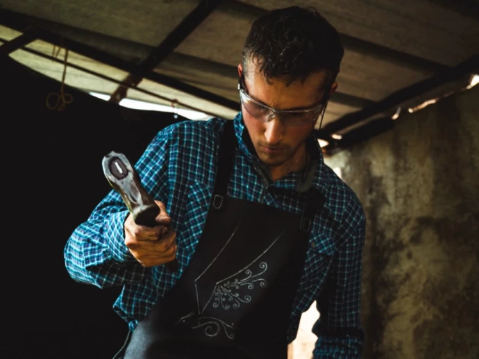 Albin est formé au métier de Fèvre – Taillandier – Coutelier, une formation qui transmet les gestes traditionnels de la forge appliqués à la fabrication d’outils et de lames.